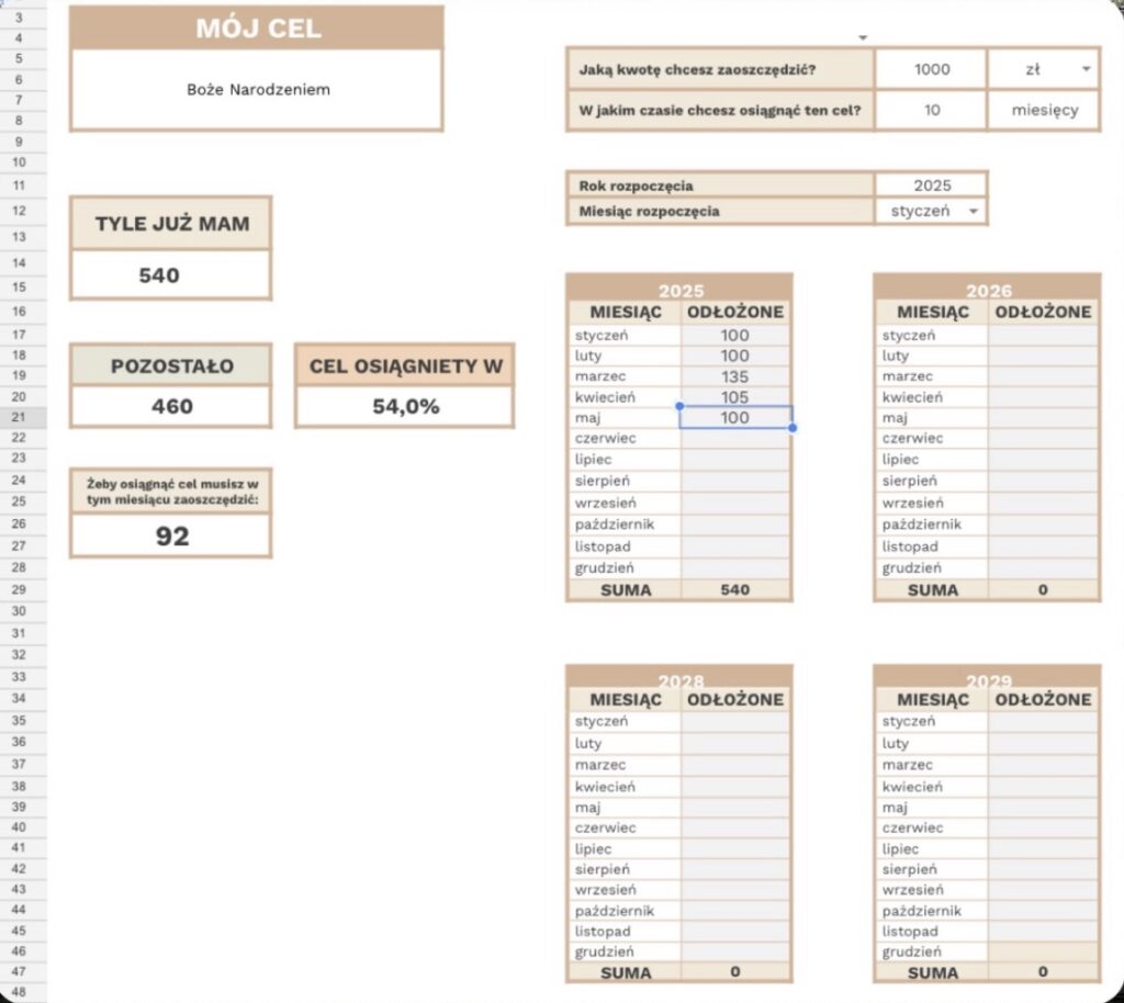 ✔️ Arkusze funduszy celowych – wszystko liczy się automatycznie