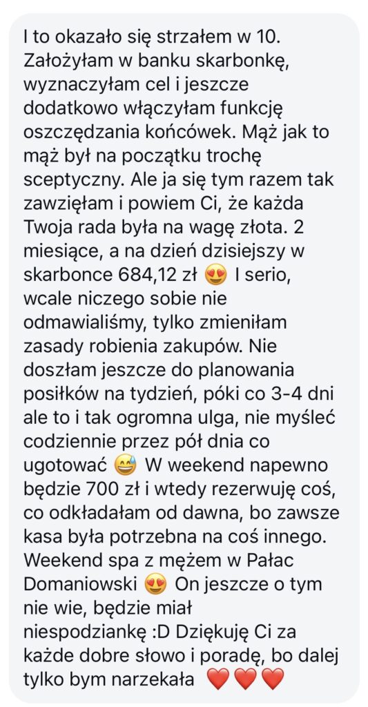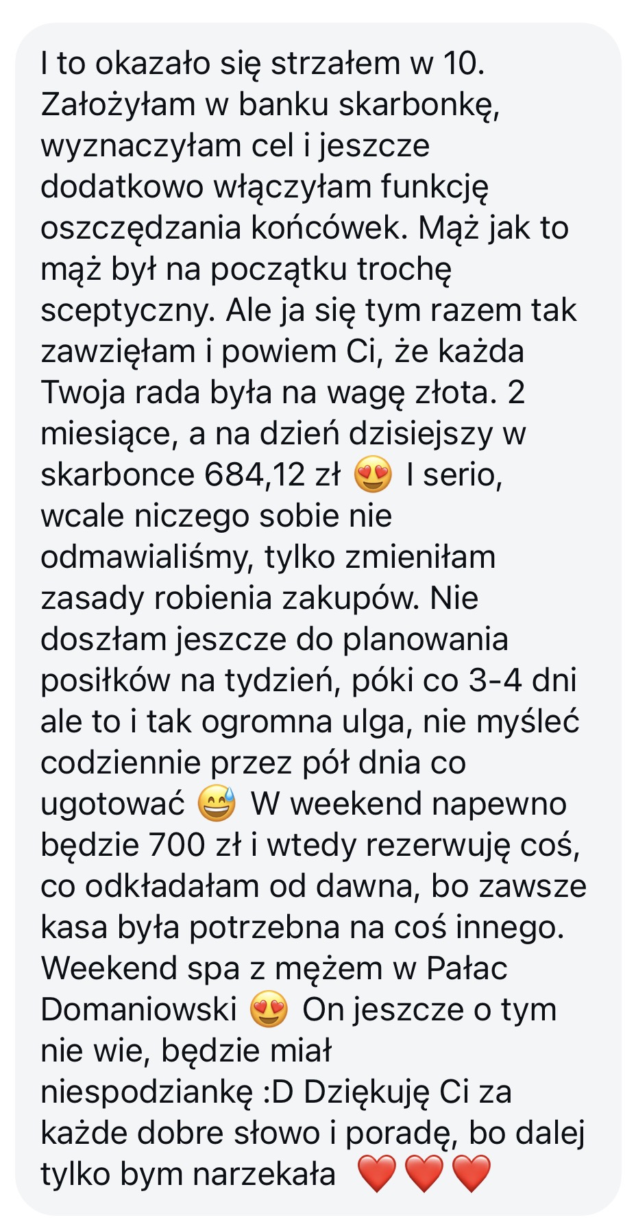 ✔️ Zaczynasz oszczędzać bez rezygnowania z życia, bez presji, bez wyrzutów sumienia